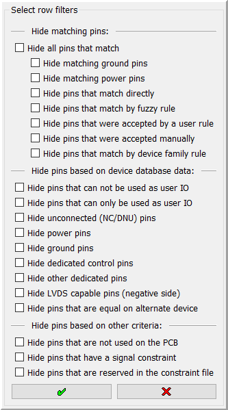 The Pin view row filter and device view pin filter have been reorganized and have three distinct groups.